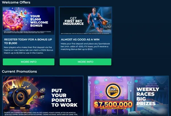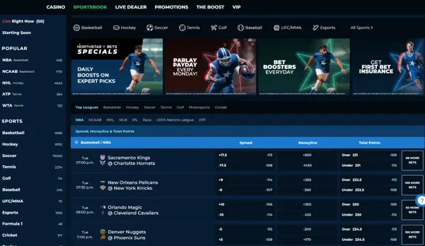 Nous proposons les types de paris courants tels que moneyline, handicap, totaux et futurs, ainsi que des paris spéciaux joueurs et équipes sur certains événements. Les paris en direct sont disponibles sur de nombreuses rencontres, et les pages de match mettent l’accent sur un affichage clair des cotes, avec des minuteurs utiles et un contexte de score. NorthStar propose aussi des promos sport comme Early Payout (paiement anticipé lorsque votre équipe prend une avance d’un certain écart sur des événements éligibles) et un Monday Sports Bonus qui rend un pari bonus lorsque vous respectez les exigences de mise et de cotes indiquées.