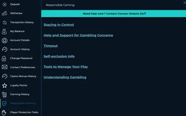 Pour des pauses plus longues, l’auto-exclusion est disponible de 6 mois jusqu’à l’exclusion permanente. Si vous recherchez des conseils au-delà de nos outils, notre équipe d’assistance peut vous orienter vers des ressources fiables disponibles en Ontario.