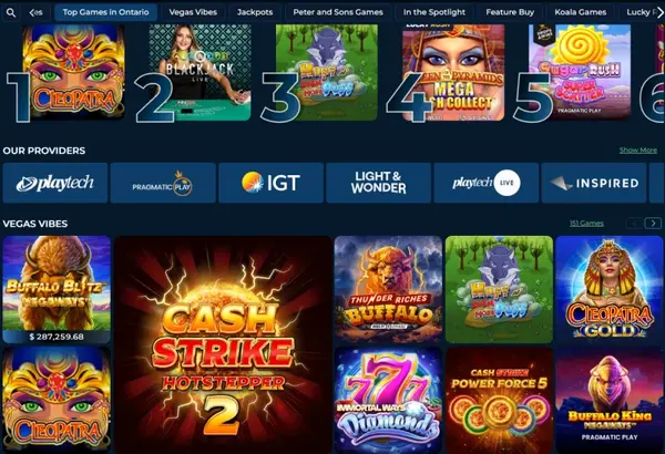 Les machines à sous constituent la plus grande partie de la ludothèque. Si vous comparez les machines à sous NorthStarBets à celles d’autres sites ontariens, vous remarquerez un large mélange de rouleaux classiques, de machines à sous vidéo modernes et de thèmes de type sous licence provenant de grands fournisseurs. Les jeux jackpot disposent de leur propre catégorie, et vous pouvez aussi trouver des titres Cash Collect et Fire Blaze adaptés à des sessions plus rapides. Beaucoup de jeux proposent un mode démo lorsque le fournisseur le permet, tandis que certains exigent une session en argent réel après la connexion NorthStarBets.